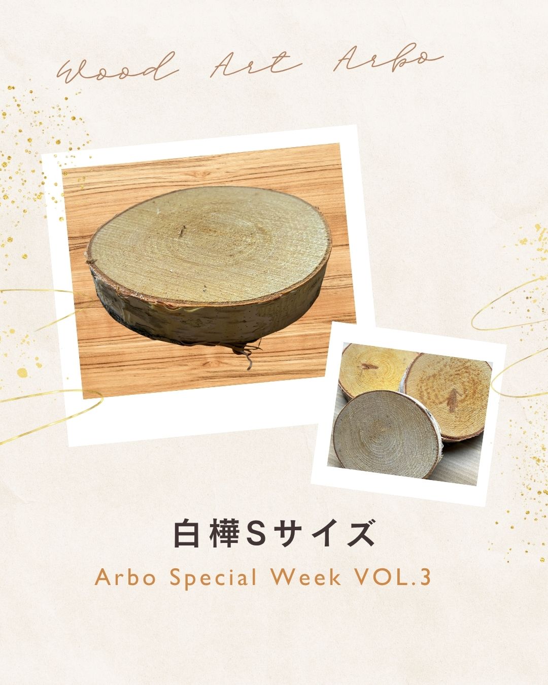 【木の年輪板 白樺樹皮つき Sサイズ 限定セール】